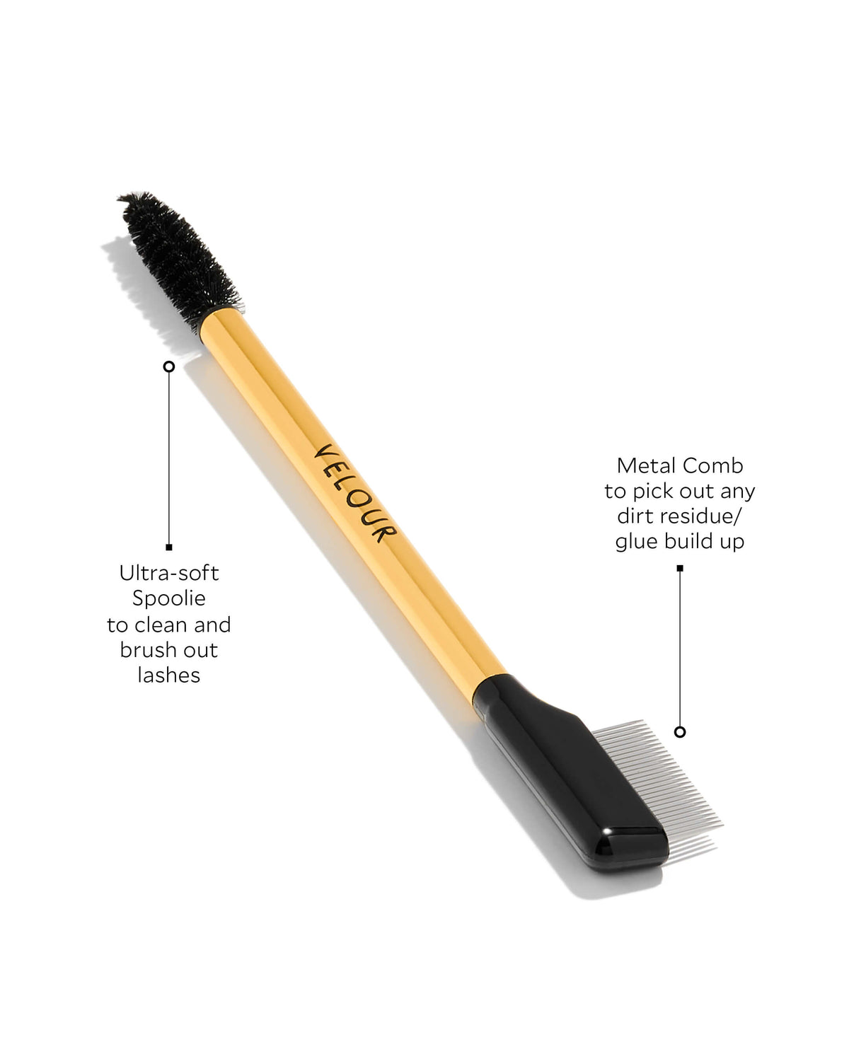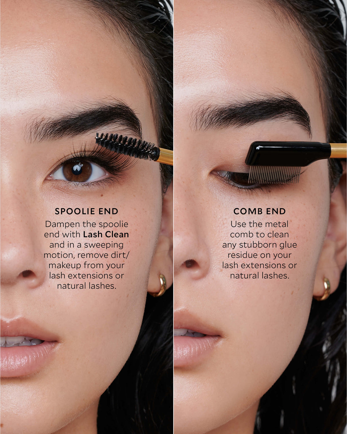 A dual-ended lash tool to assist in an effortless lash clean. Created for both false lashes and lash extensions. Our Too Clean Wash Wand is a unique 2-in-1 lash tool with a soft brush on one end and a unique metal comb on the other, which easily removes stubborn makeup, dirt, and lash adhesive from false lashes.