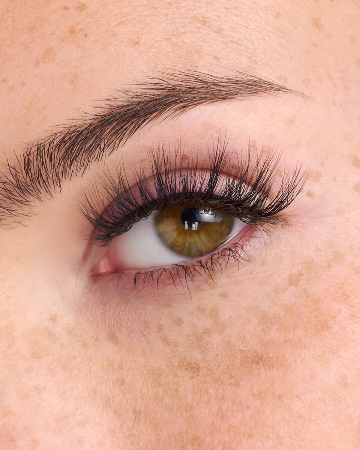 We recommend curling your natural lashes and applying mascara before you apply false lashes. A gentle curl of your natural lashes will lift them up, giving more structure and support to the false lash.