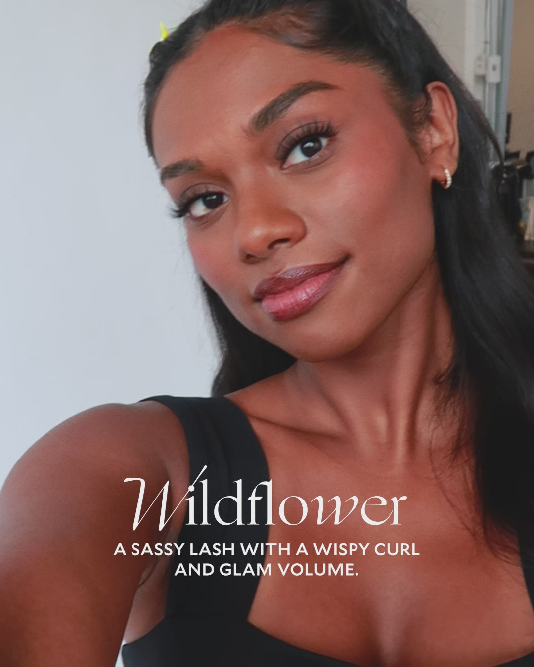 Wildflower is the sassiest of the bunch! Bold and blooming, this round, clustered lash has a wispy curl and glam volume to make a statement anywhere you go. Entirely plant-based, our Vegan and Cruelty-Free lashes can be reused 20+ times and come in recyclable packaging.
