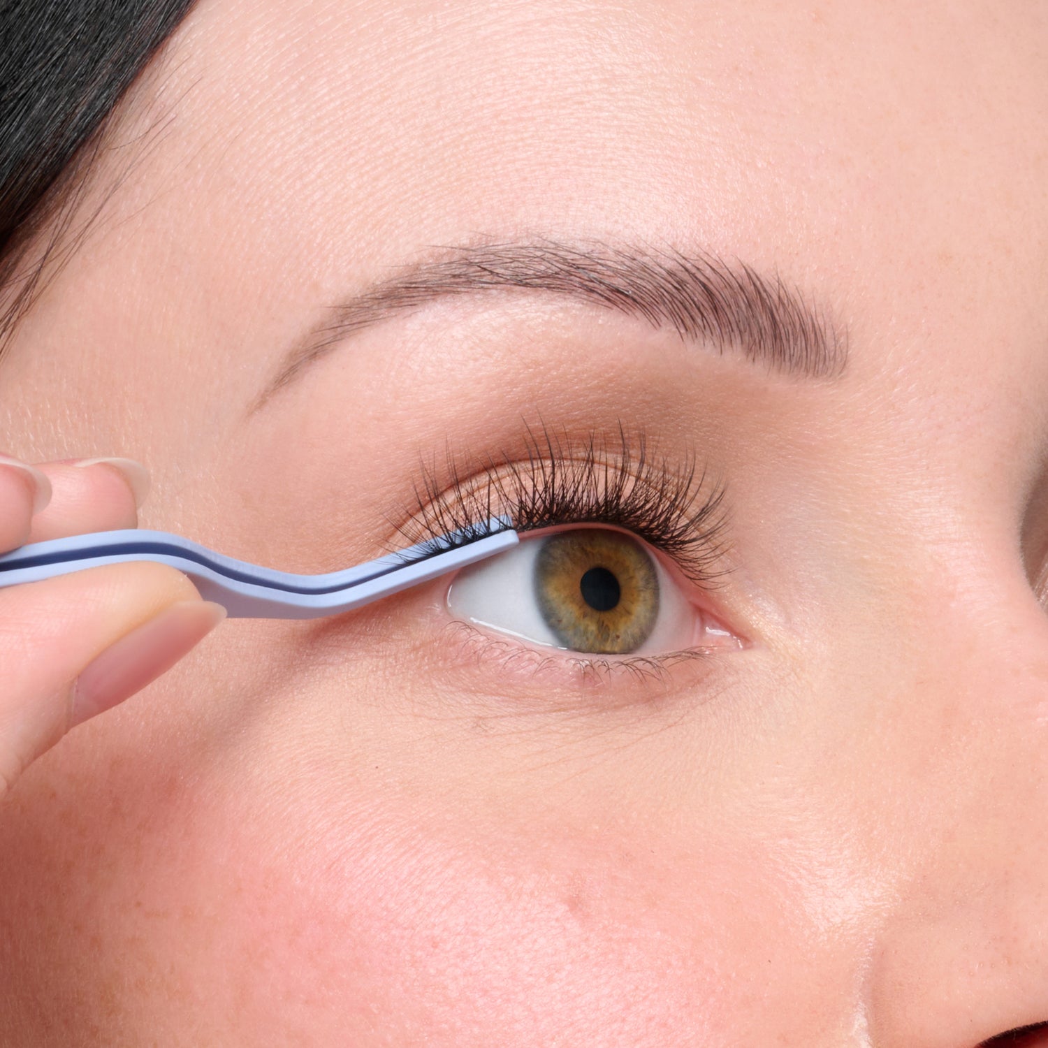 Position the cluster underneath your natural lashes, working from the inner to outer corner of your lash line, using Short, Medium, then Long clusters.