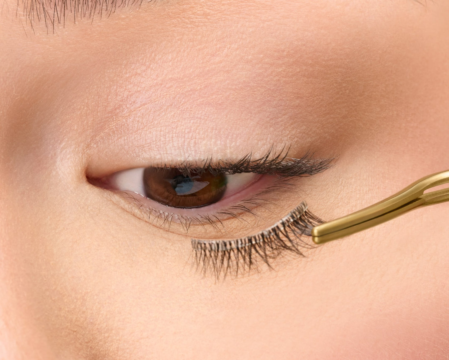 For a smoother application, gently hold the lash fibers and wiggle them back and forth to relax the band, shaping it to naturally follow the curve of your eye.