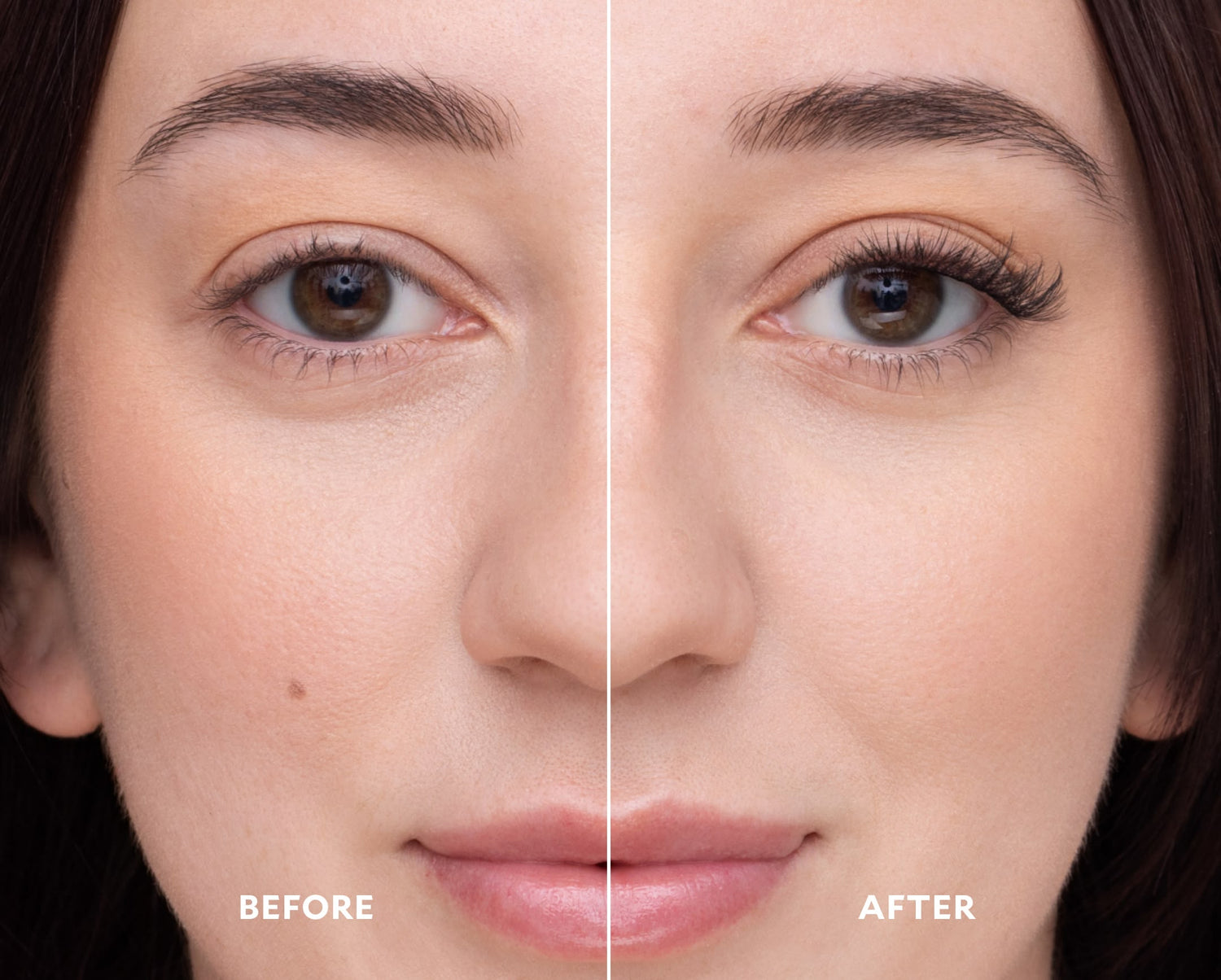 Gently curl your natural lashes. Follow with a thin coat of mascara to enhance lift and volume throughout the day. For multi-day wear, opt to skip mascara to avoid any fallout or flaking overnight.