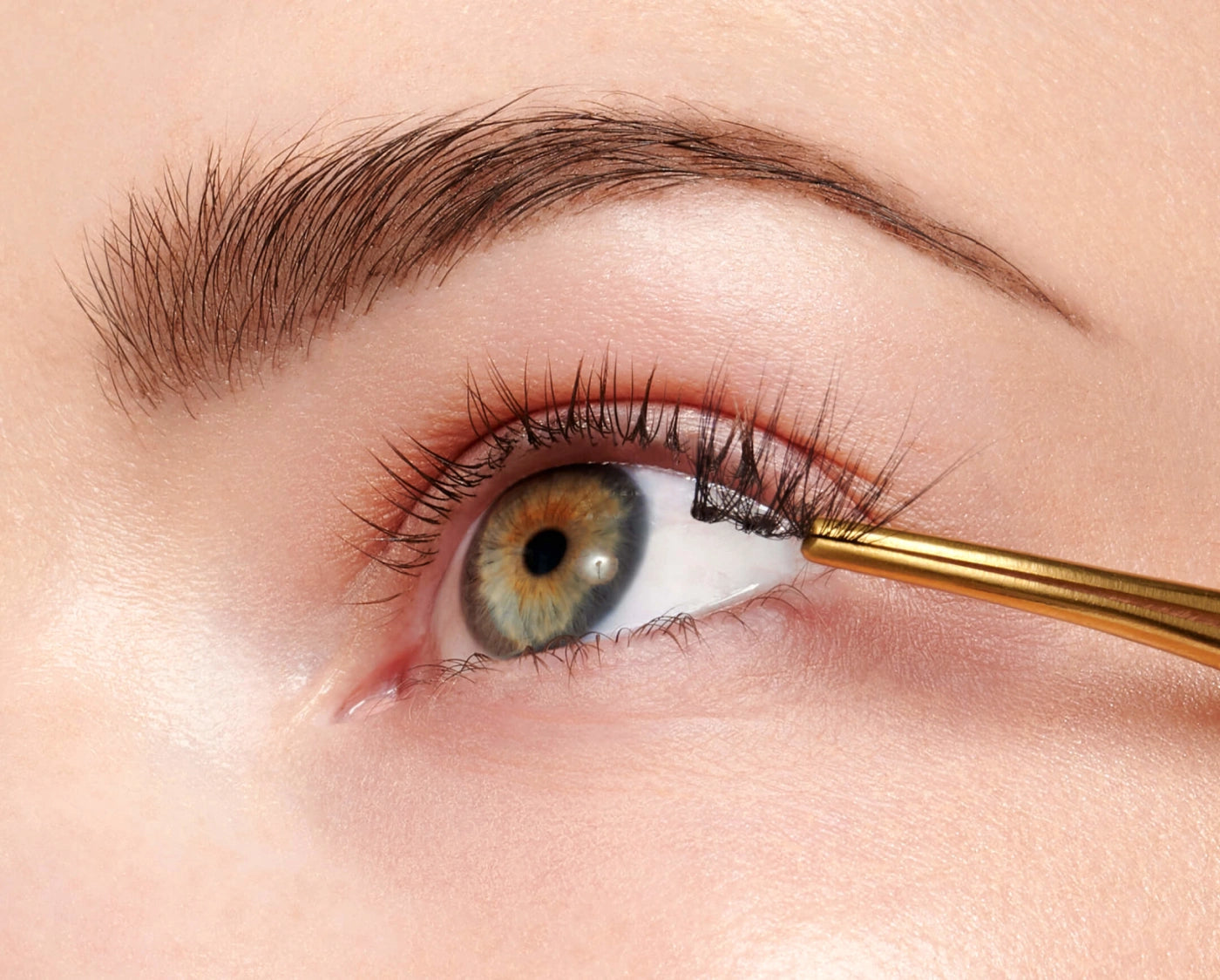 Once clusters are in place, clamp them with natural lashes using the applicator, following the curve of your lash line to secure the bond.