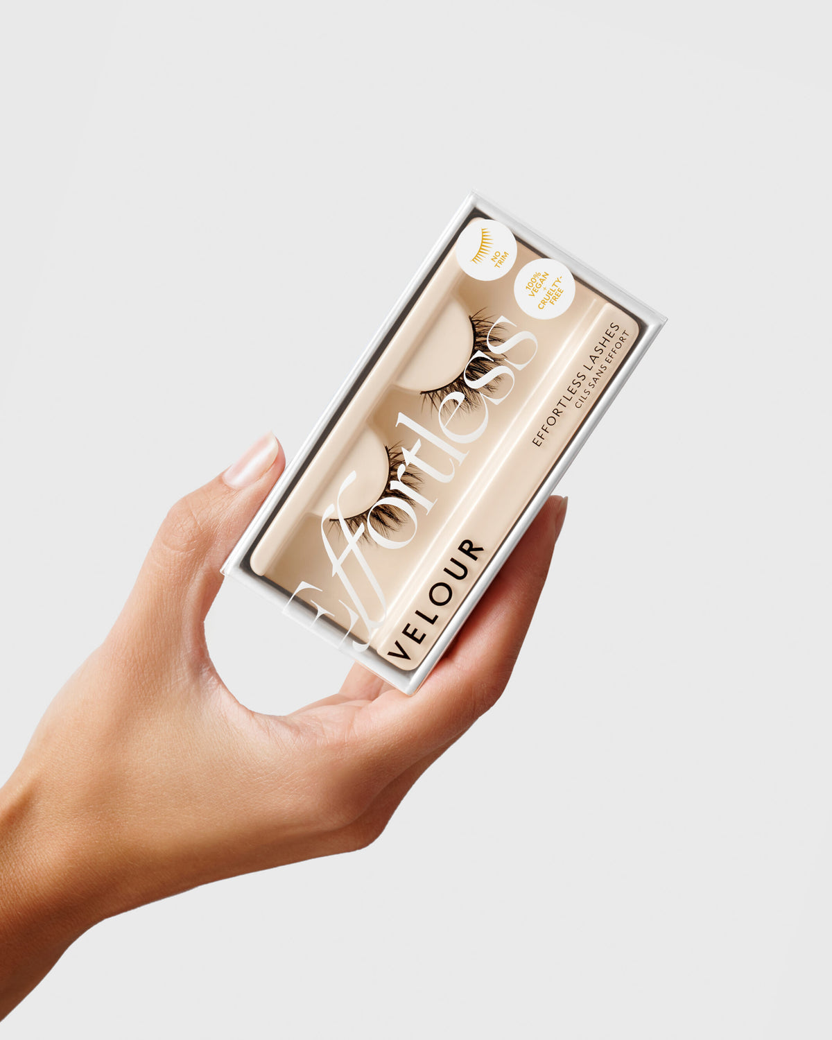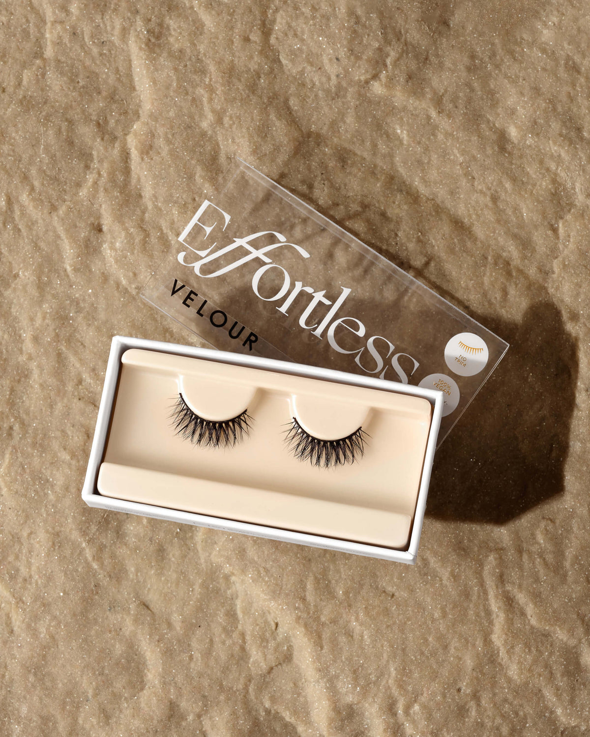Option B: Using Velour Lash & Go Eyeliner: Starting with one eye, apply from inner to outer corner of the lash line. Apply the false lash while the eyeliner is still wet. Pro Tip: Lash & Go dries down pretty quickly, so we recommend doing this on one eye at a time.