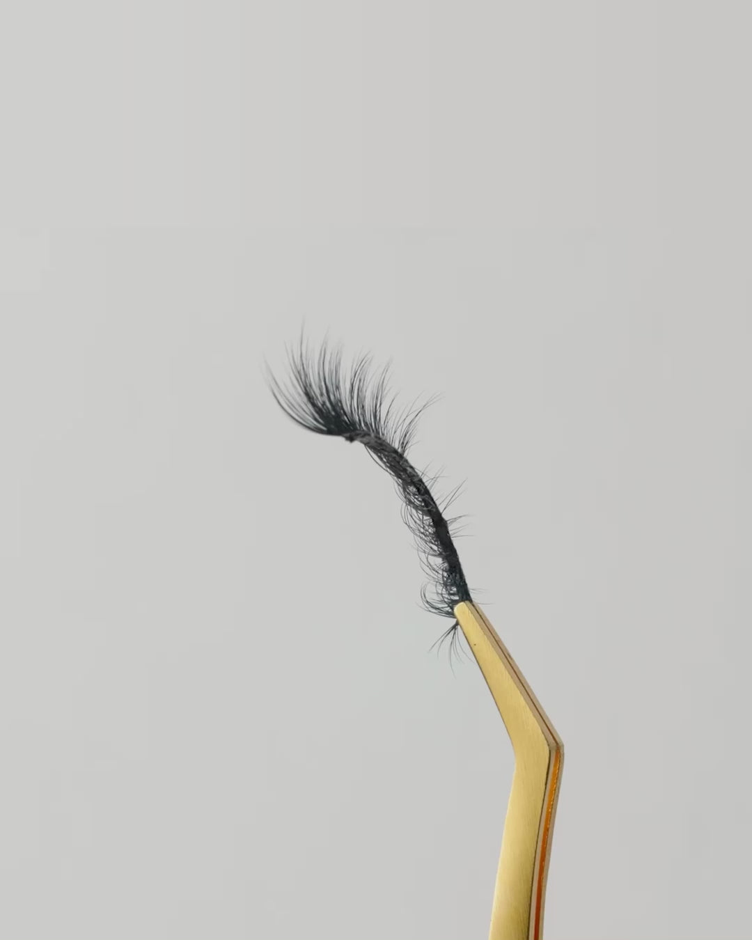 Gently remove lashes from the tray. Toggle the band back and forth to ensure the lash isn’t stiff for application.