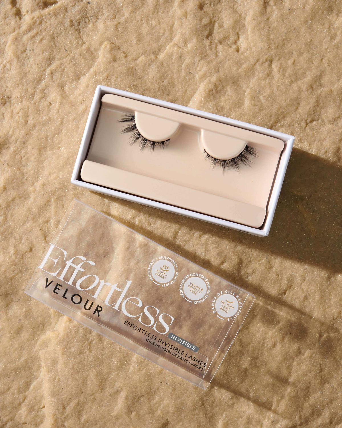 Feel free to apply your makeup as usual! We suggest curling your lashes and applying a light coat of mascara to support the lashes throughout the day.We recommend using Velour Pretty Big Deal Mascara.Gently remove lashes from the tray. Toggle the band back and forth to ensure the lash isn’t stiff for application. Due to the delicate nature of the Invisible bands, ensure you're extra gentle during this process.