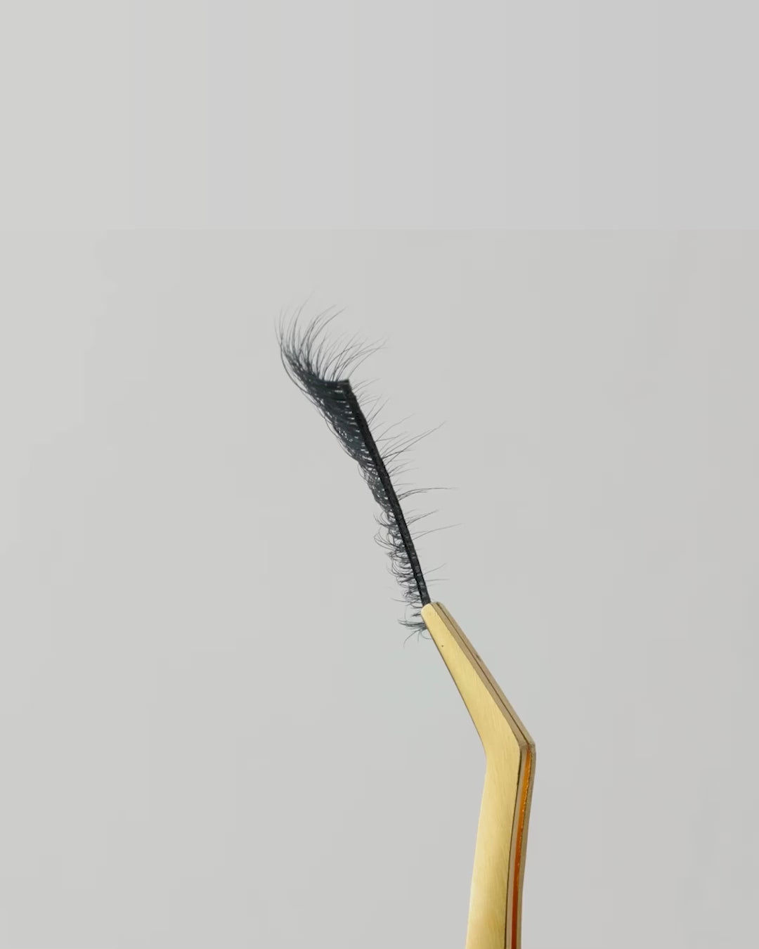 Gently remove lashes from the tray. Toggle the band back and forth to ensure the lash isn’t stiff for application.