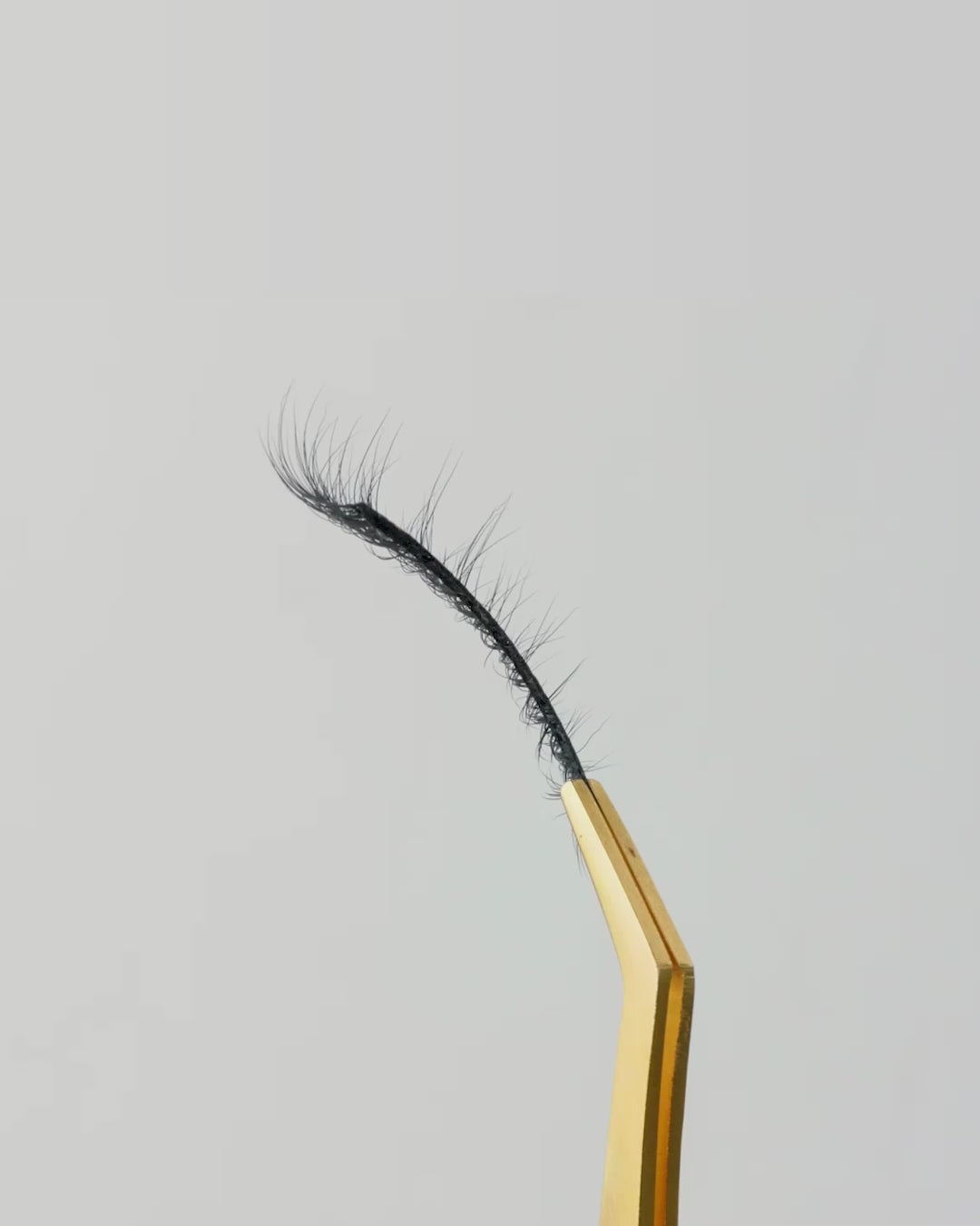 Gently remove lashes from the tray. Toggle the band back and forth to ensure the lash isn’t stiff for application.