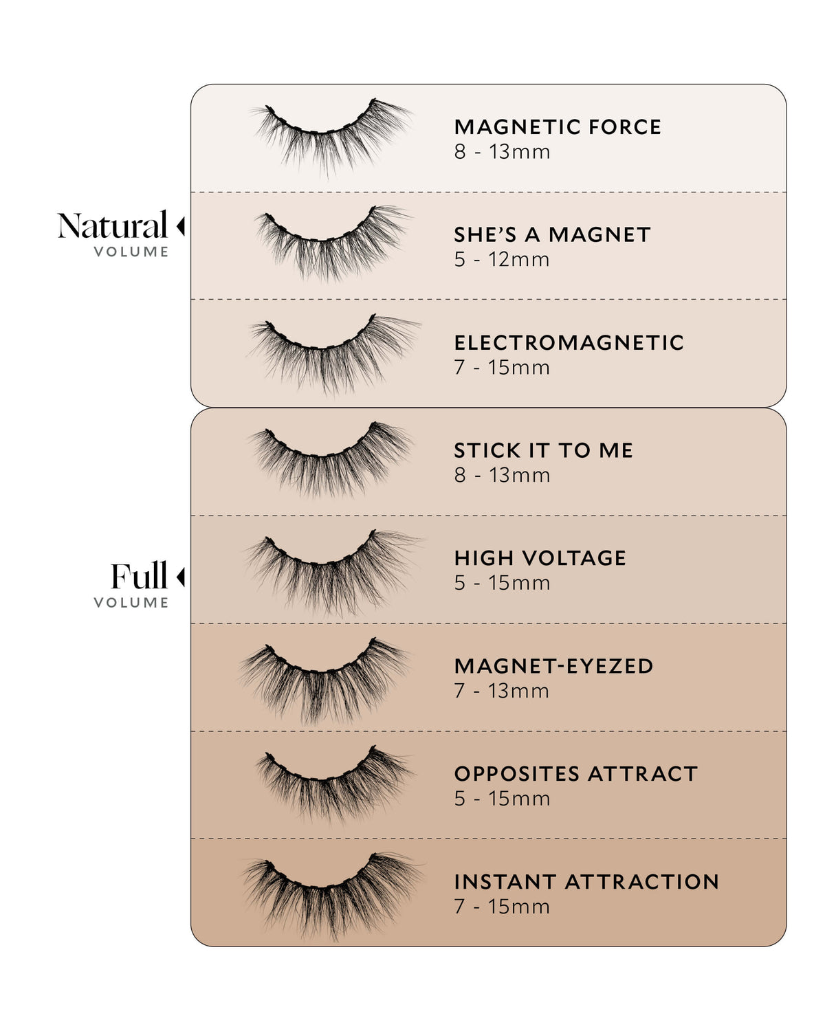 Attract attention with Magnetic Force. A classic, flared magnetic lash that will create a chic and sophisticated cat eye. Wear this style with caution – it will have others gravitating towards you.
