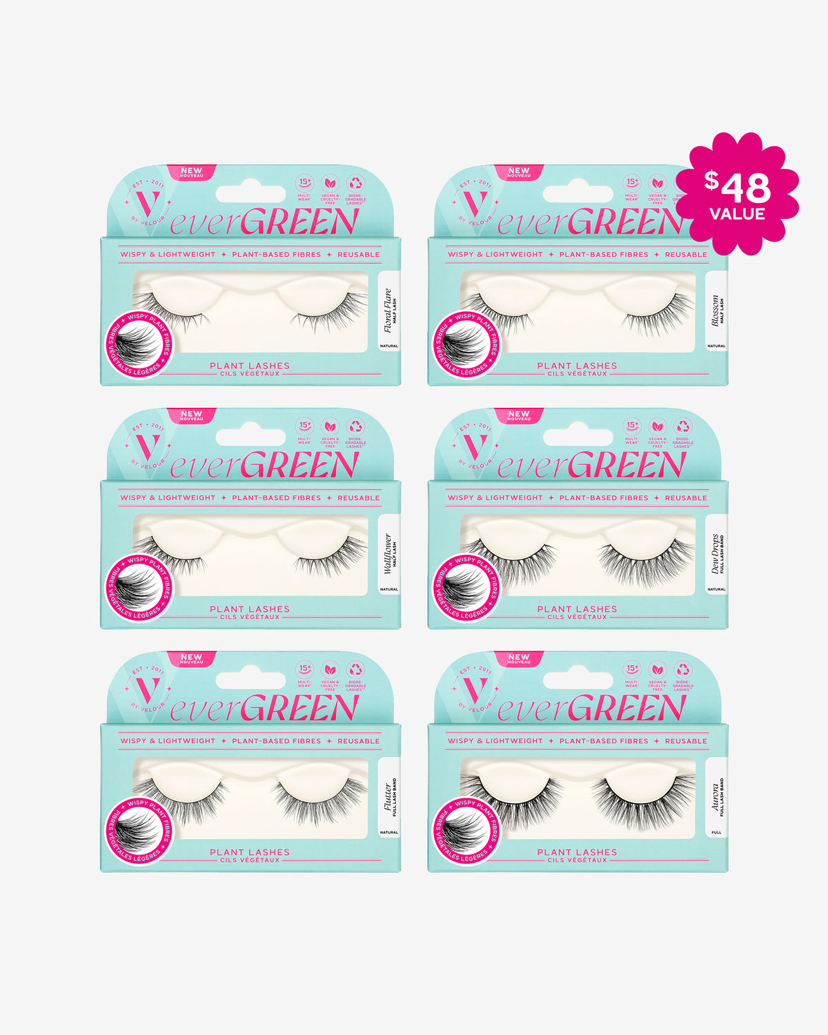 Six pairs of pairs of everGreen false lashes: