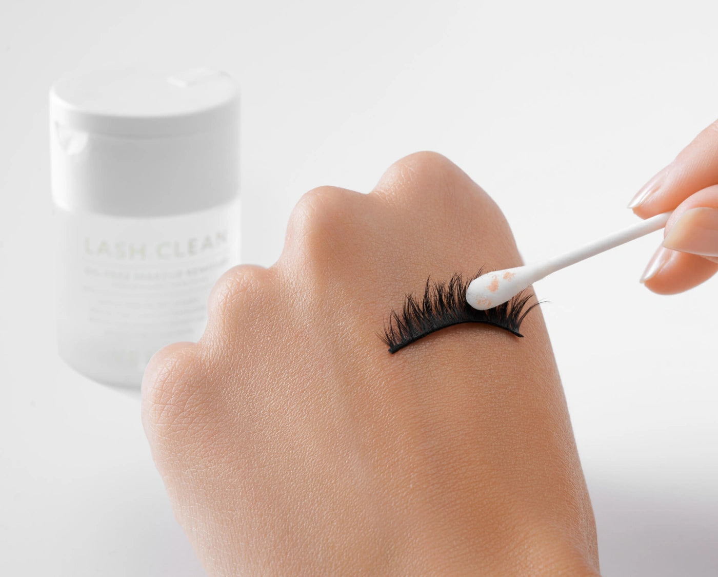 Clean any makeup off your Velour lashes with our Lash Clean or other oil-free makeup remover. Using a Q-tip, gently dab and twirl as needed on affected areas of your lashes.