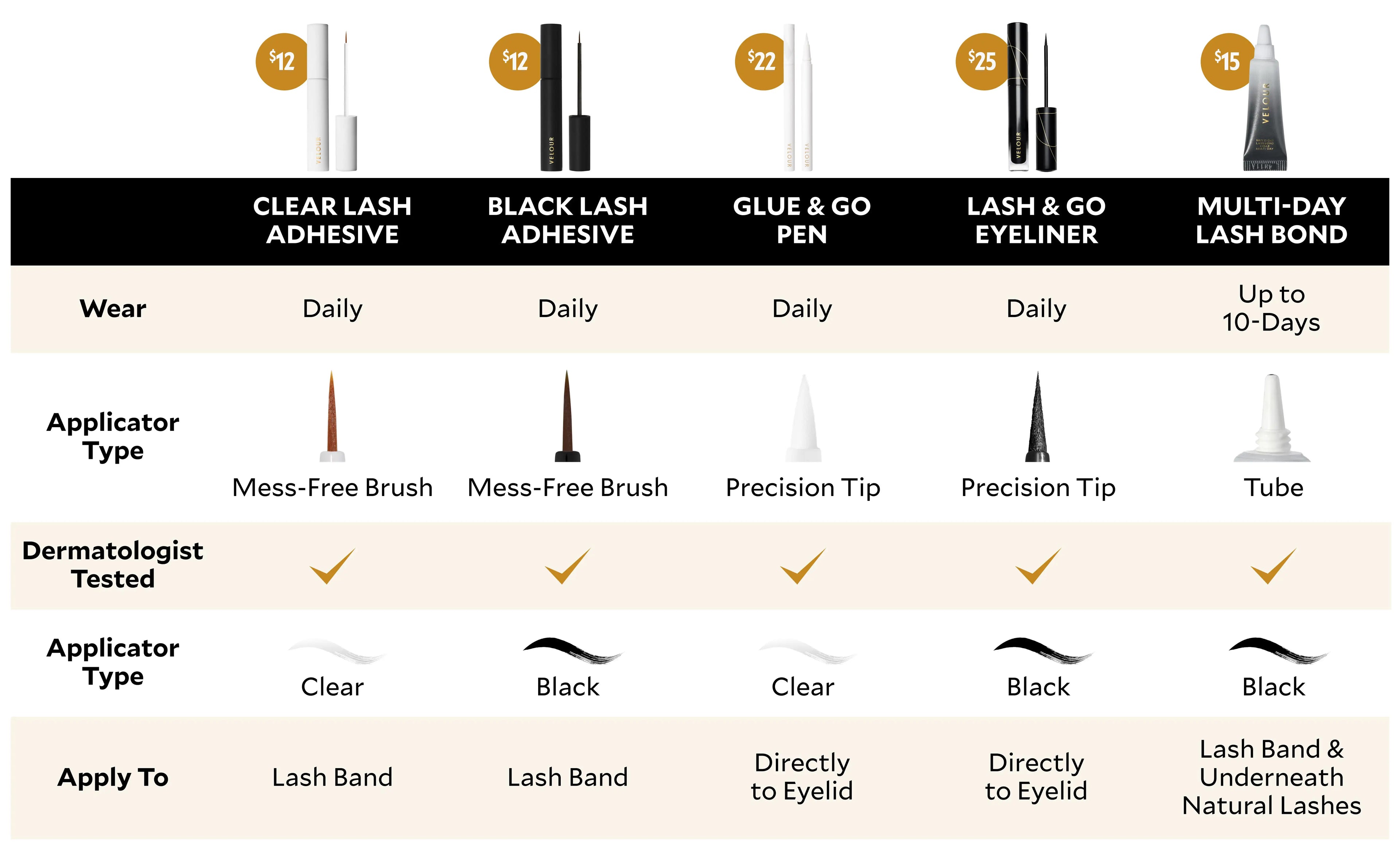 Find the perfect lash glue with the Velour Adhesive Guide