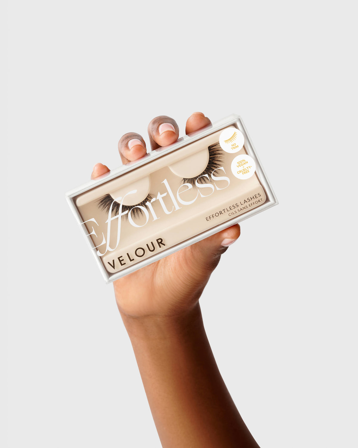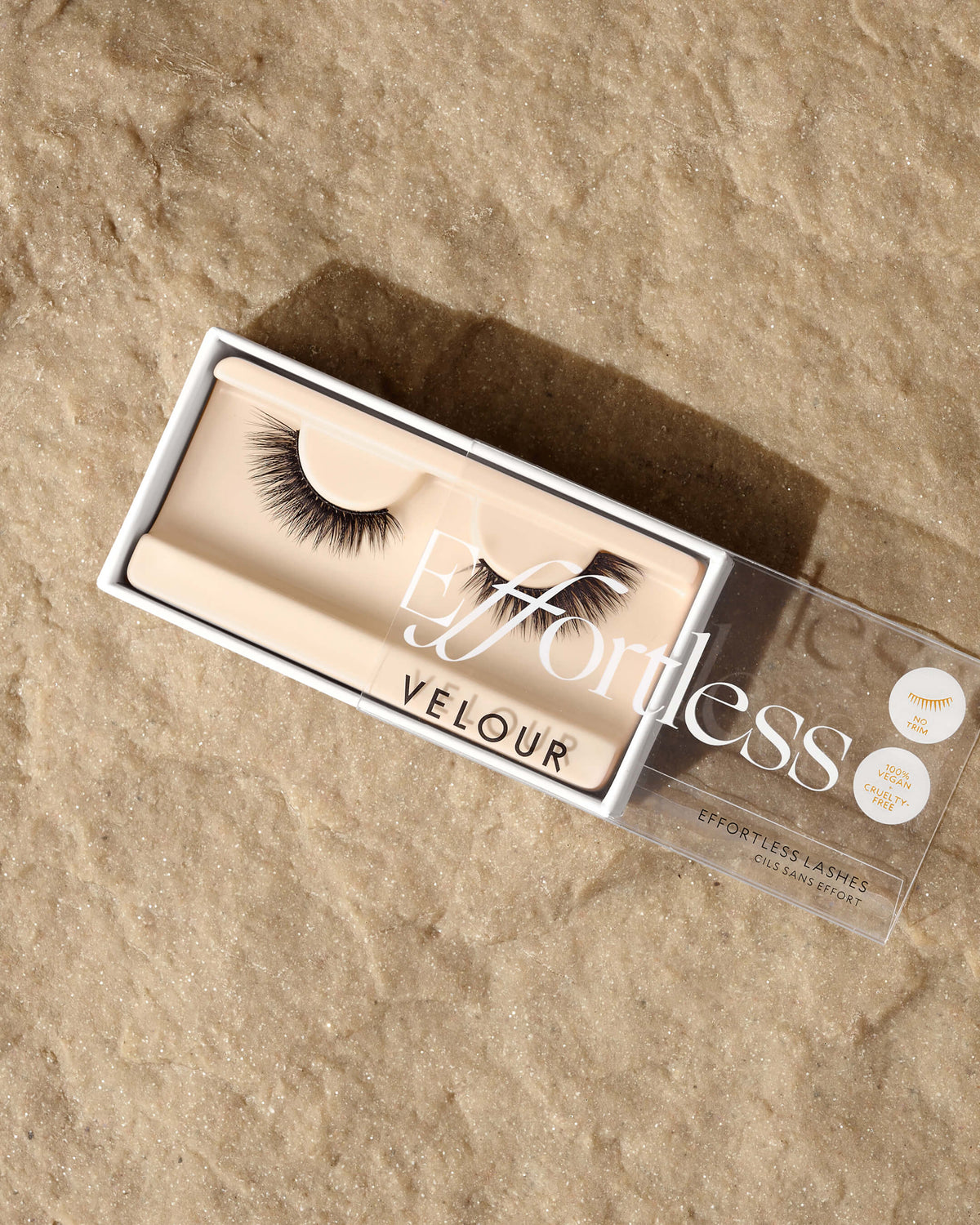 Option B: Using Velour Lash & Go Eyeliner: Starting with one eye, apply from inner to outer corner of the lash line. Apply the false lash while the eyeliner is still wet. Pro Tip: Lash & Go dries down pretty quickly, so we recommend doing this on one eye at a time.